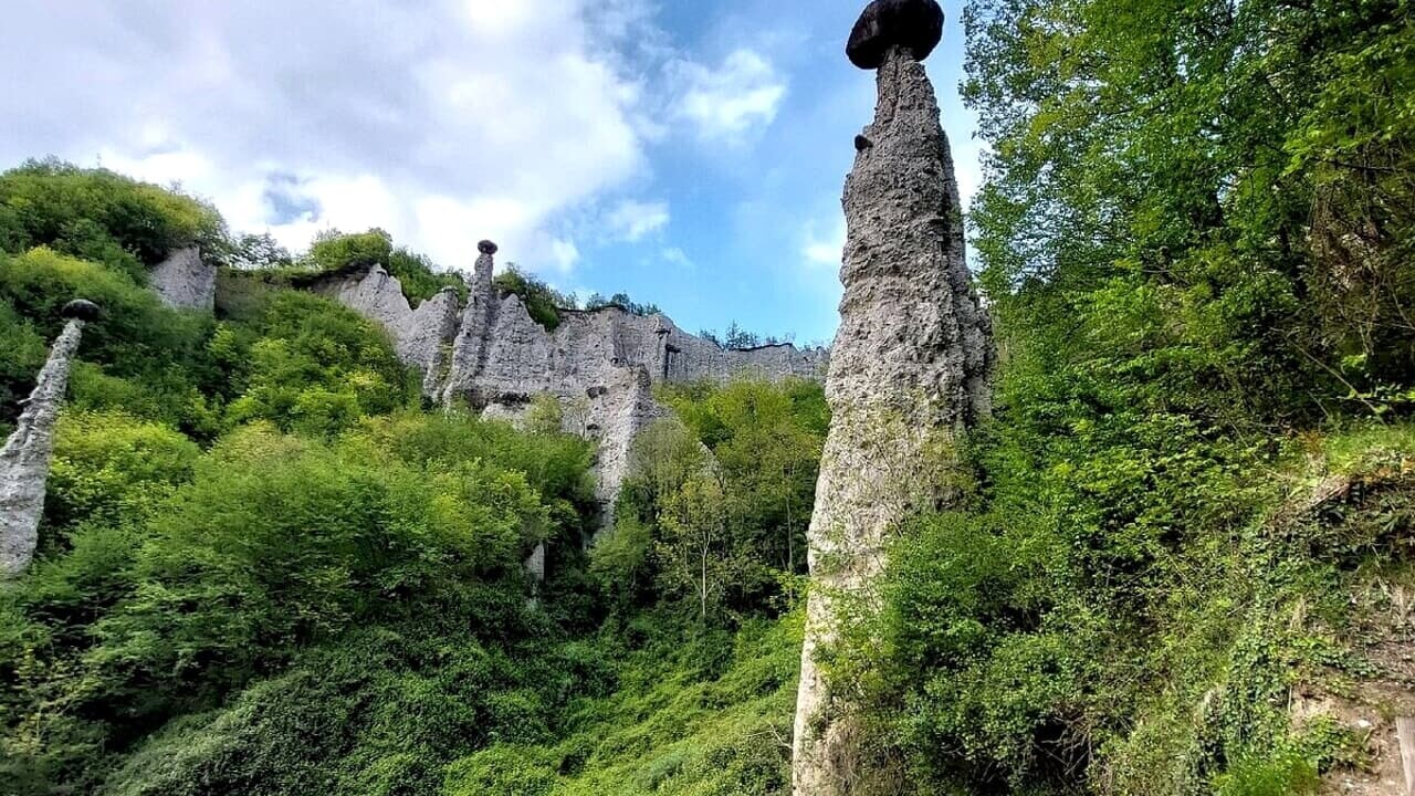 La Riserva, istituita nel 1984, prende il nome dalla particolare forma che il deposito morenico di sabbia, massi e ciottoli ha acquisito nel corso dei secoli, trasformandosi in lingue di roccia alte fino a 30 metri, con massi di grandi dimensioni adagiati sulla loro sommità, a fungere da scudi protettivi. Ad accrescere questa azione protettiva, è presente attorno alla piramide di terra una pellicola costituita da argilla insolubile, che viene trasportata dall’acqua lungo i fianchi della struttura. Il processo di erosione, prodotto dagli agenti atmosferici, è continuo e visibile nel giro di alcune decine di anni.